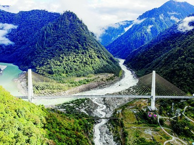 川藏公路通麦路段上的迫龙沟特大桥。新华社发