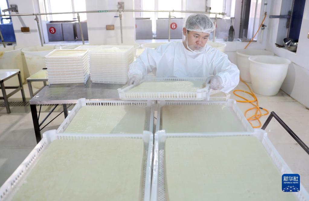 在昌图红瑞食品酿造有限公司的生产车间内,一张张脱水的干豆腐如同纸片一般,乘坐自动化生产线,传输到包装车间内。这里的日产量能达6000斤,不仅生产干豆腐,还生产豆泡、豆腐块等多样化产品,产品每天都发往沈阳、铁岭、天津、上海等地。