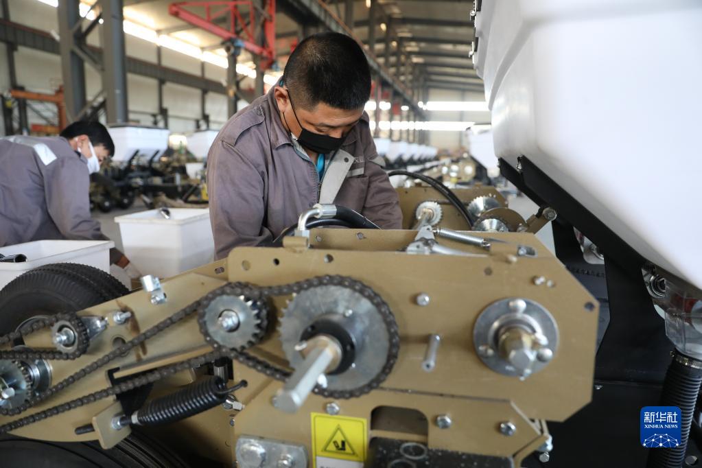 在中科农业(昌图)有限公司车间内,物料车穿梭其间,机械吊轨快速作业。这家去年转型生产农机的企业,正加紧赶制一批新的免耕播种机。