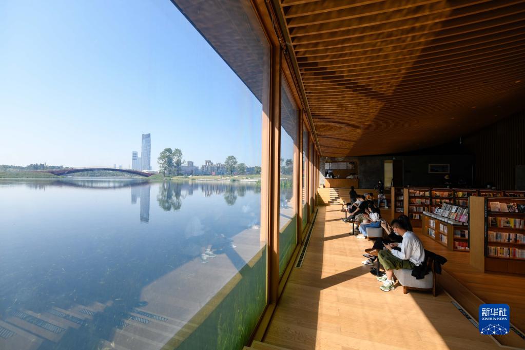 读者在成都兴隆湖畔的中信书店内读书(2022年4月20日摄)。 新华社记者 胥冰洁 摄