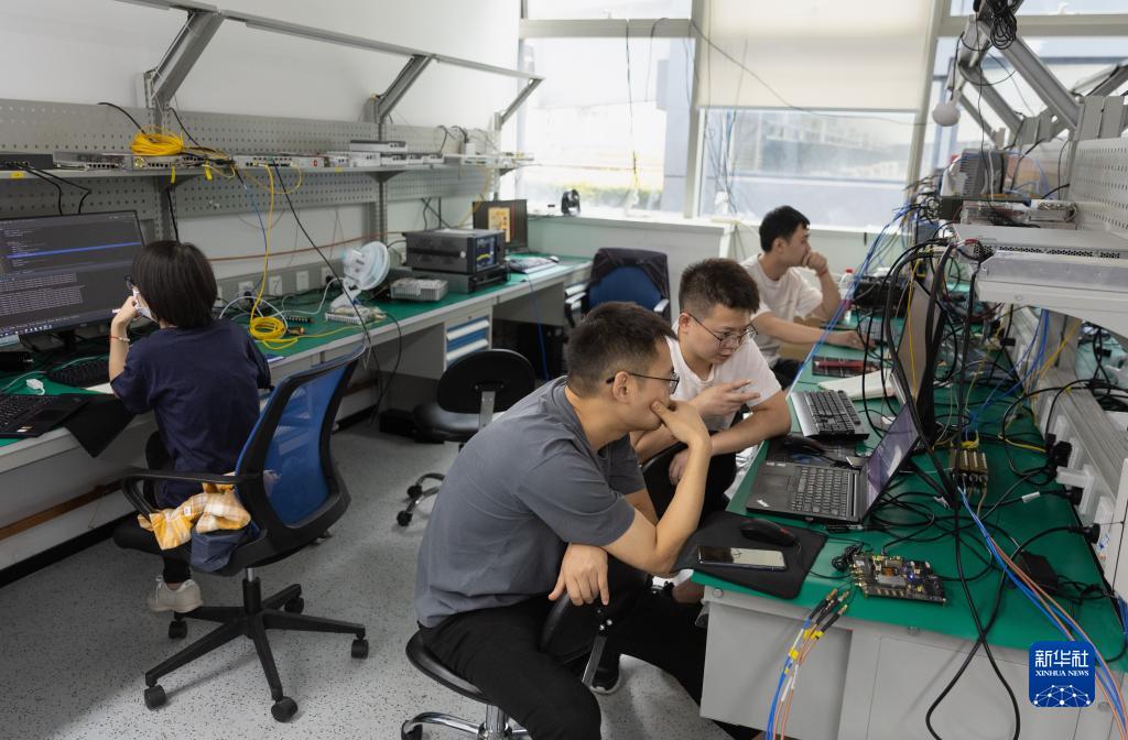 在成都中科微信息技术研究院有限公司,通信及芯片团队在讨论研究工作(2022年9月21日摄)。 新华社记者 江宏景 摄