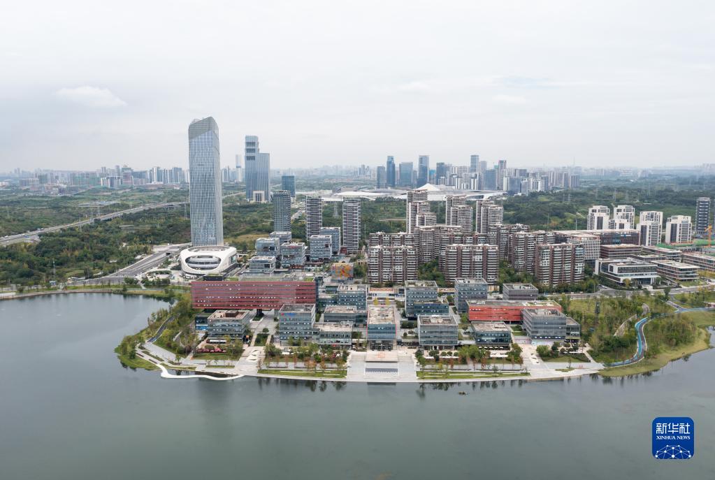 俯瞰四川天府新区兴隆湖畔的科研机构建筑大楼群(2022年9月21日摄,无人机照片)。 新华社记者 江宏景 摄