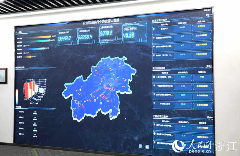 安吉“两山银行”生态资源大数据平台。 人民网 方彭依梦 摄