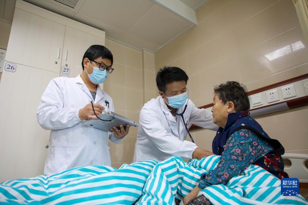 安徽省明光市中医院医生在病房查房(2022年10月2日摄)。新华社记者 曹力 摄