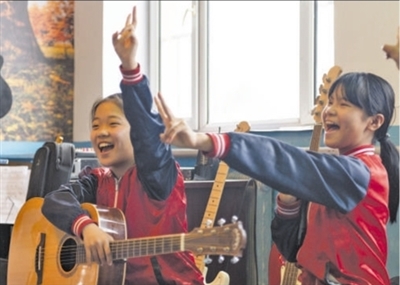 黑龙江省安达市任民镇中心小学有一个“村里的孩儿”音乐班。图为孩子们在进行乐队排练。新华社记者 谢剑飞 摄