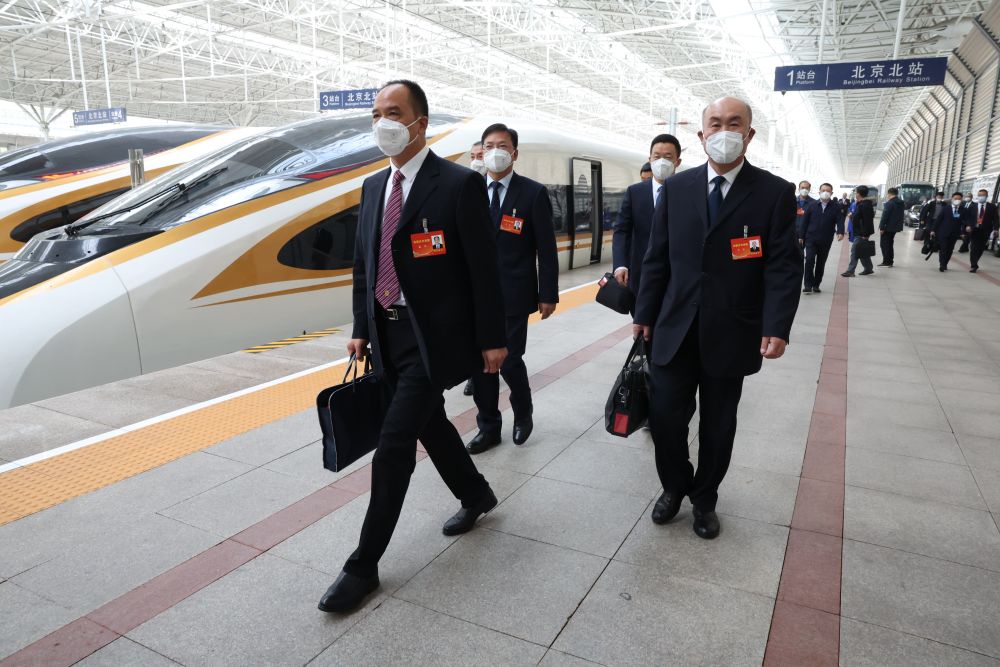 10月13日,来自内蒙古自治区的党的二十大代表乘高铁抵达北京北站。这是当日首个抵京的京外代表团。新华社记者 张玉薇 摄