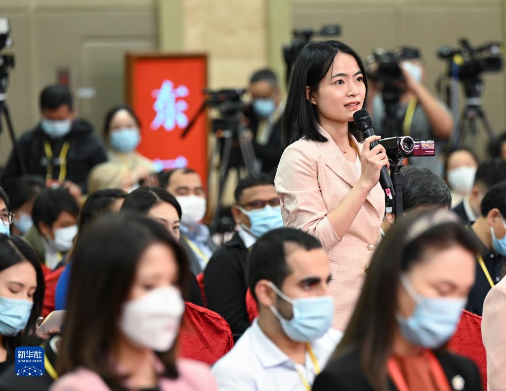 10月15日,中国共产党第二十次全国代表大会新闻发言人孙业礼在北京人民大会堂举行新闻发布会。这是记者在分会场提问。
