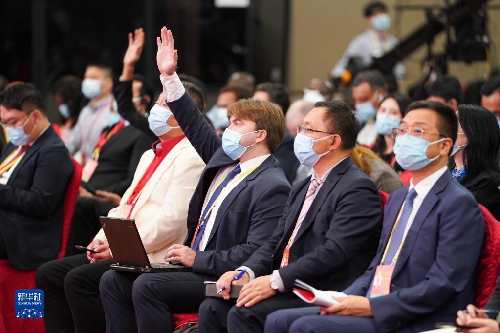 10月15日,中国共产党第二十次全国代表大会新闻发言人孙业礼在北京人民大会堂举行新闻发布会。这是记者在分会场举手提问。