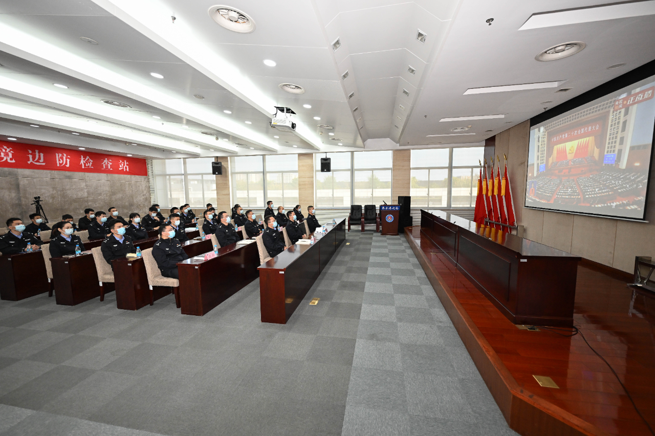 10月16日,江苏张家港出入境边防检查站组织民警职工集中收看党的二十大开幕会直播。(工人日报—中工网通讯员 赵国政 摄)