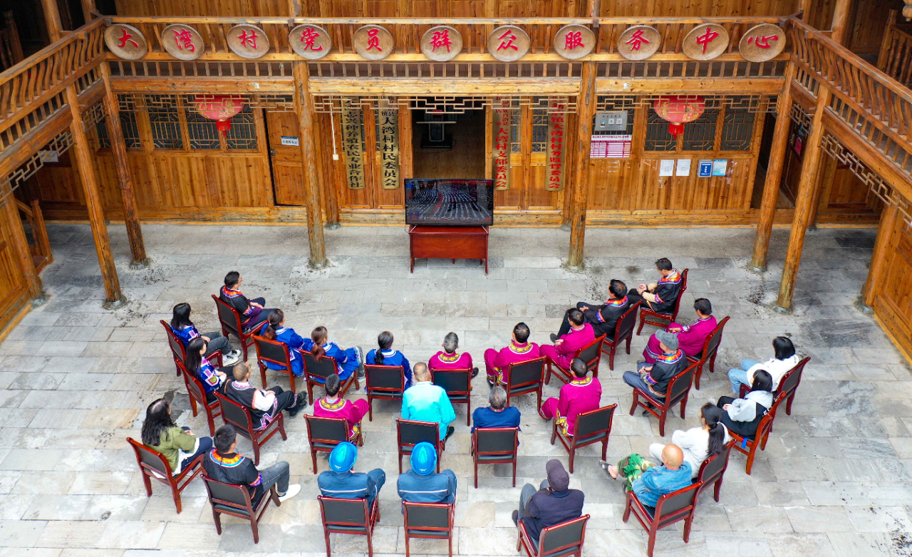 10月16日上午,在贵州省铜仁市玉屏侗族自治县新店镇大湾村,南方电网贵州玉屏供电局职工和群众一起收看党的二十大开幕会直播。(工人日报—中工网通讯员 胡攀学 摄)