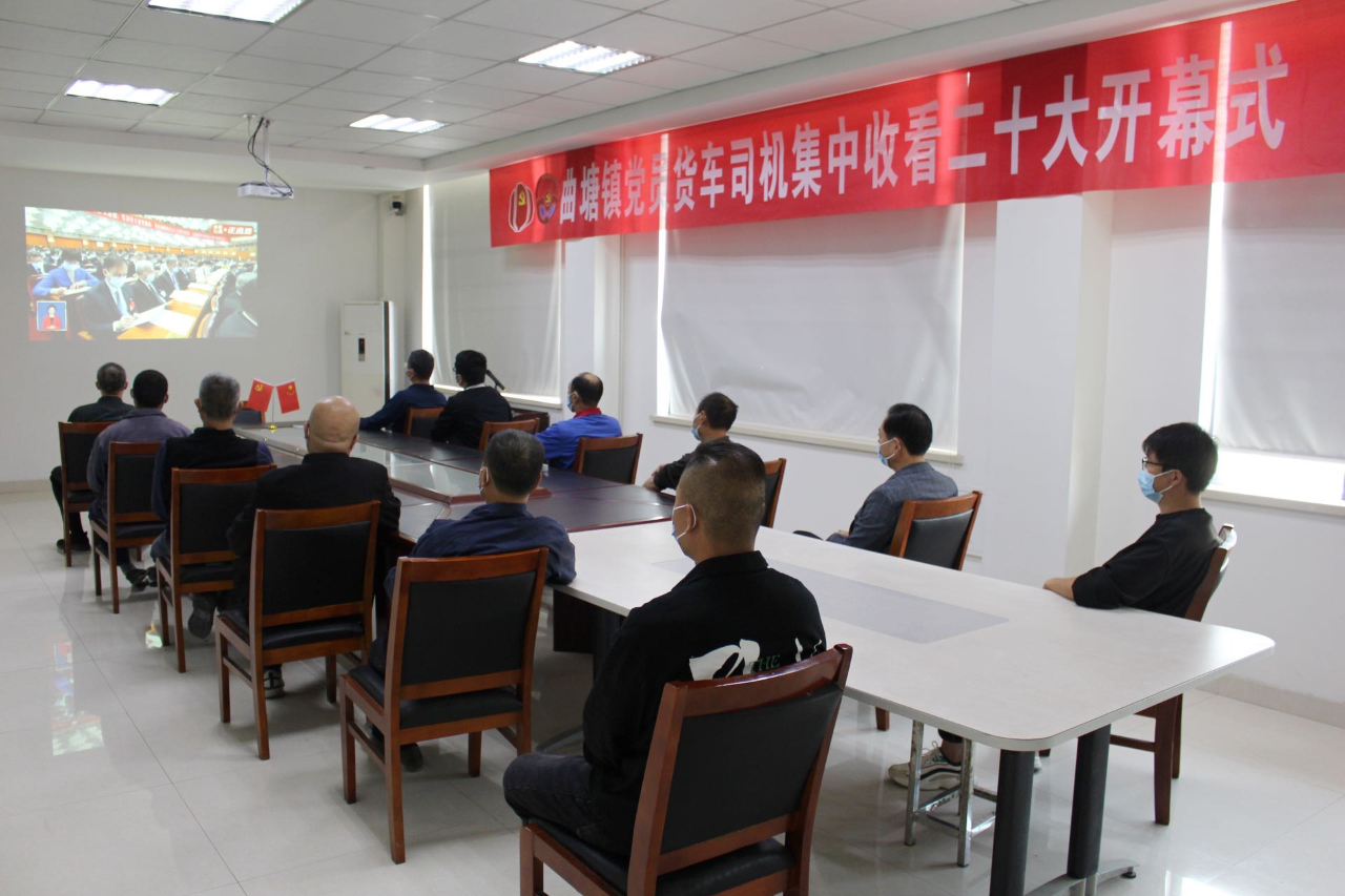 10月16日,江苏省海安市曲塘镇辖区内党员货车司机集中收看党的二十大开幕会直播。(工人日报—中工网通讯员 向中林 摄)