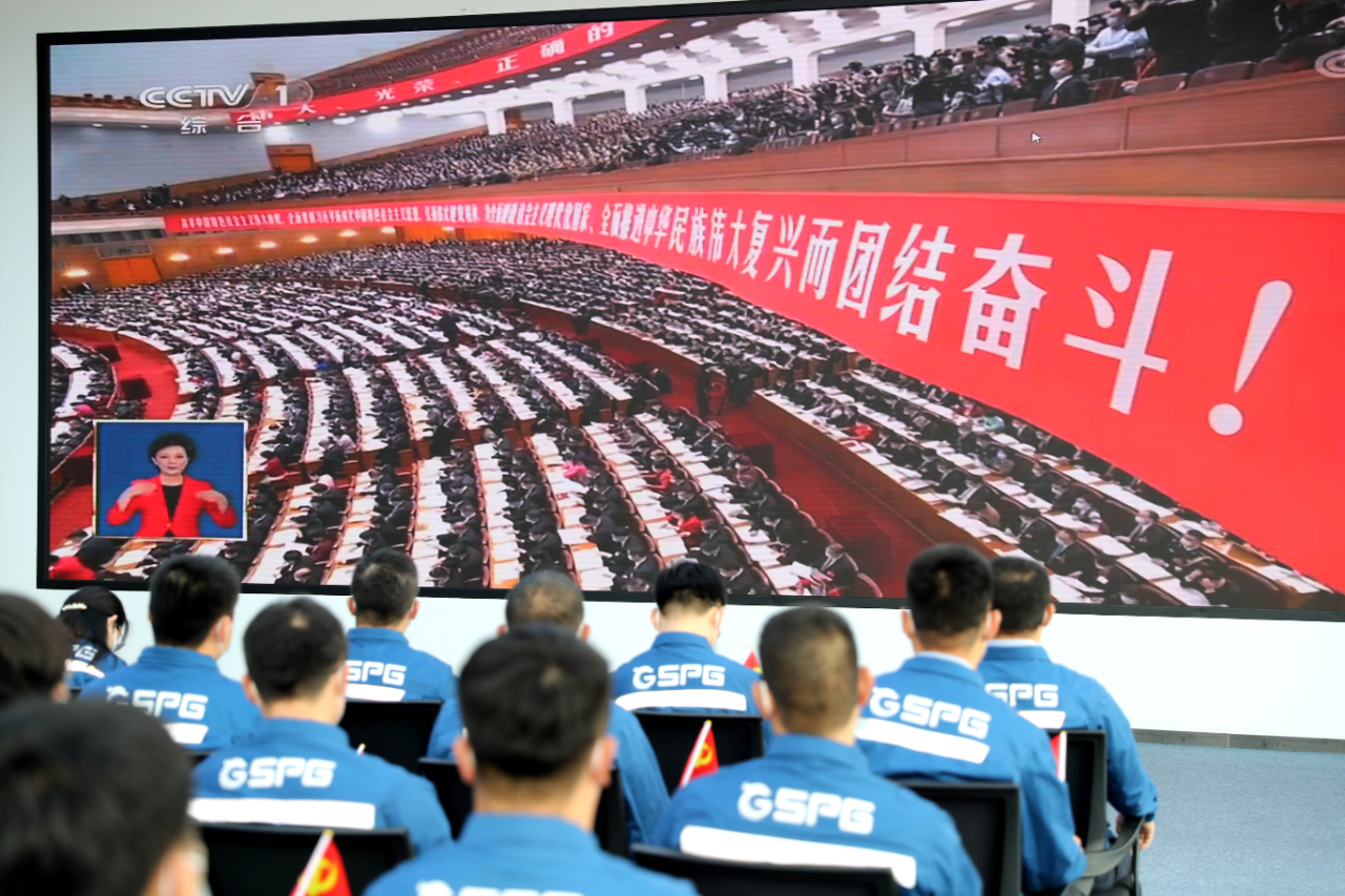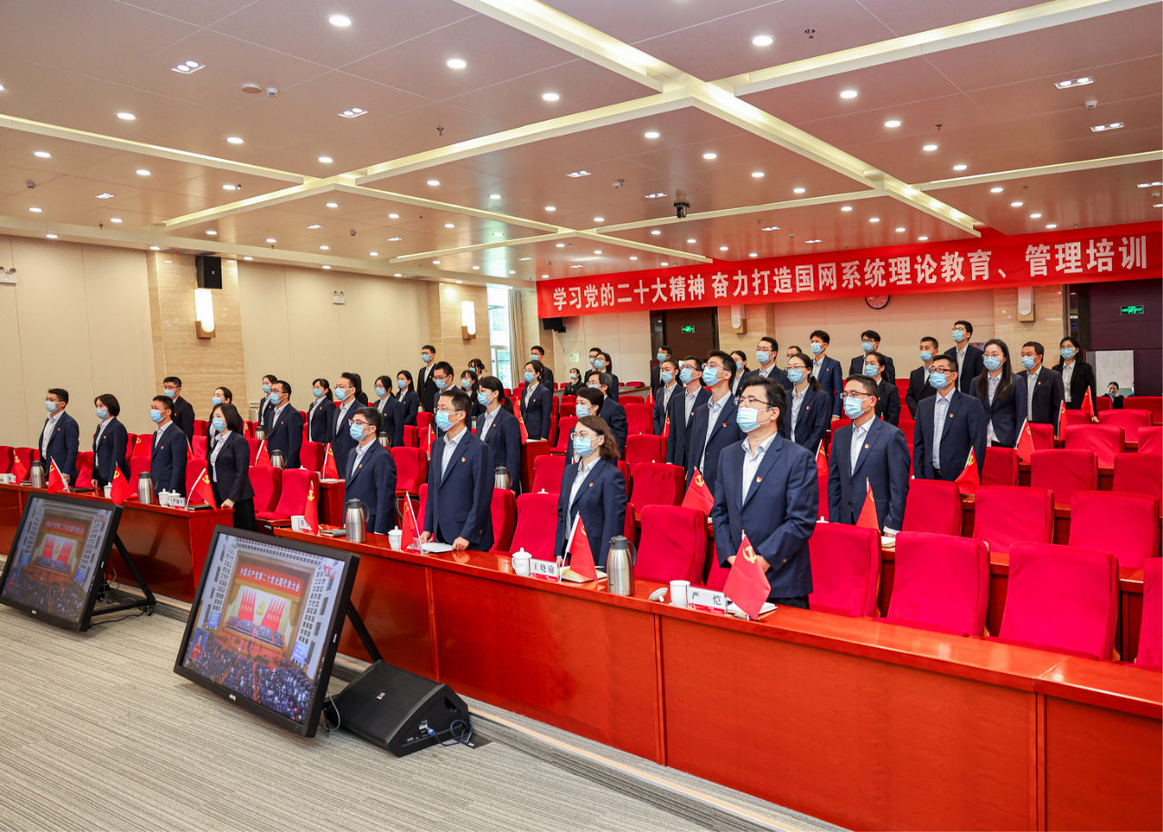 10月16日,在江苏无锡国网江苏电力党校,全体教职工收看党的二十大开幕会直播。(工人日报—中工网通讯员 汤德宏 摄)