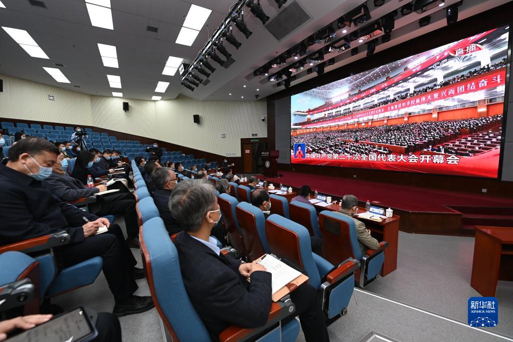 10月16日,延安革命纪念馆党员干部收看中国共产党第二十次全国代表大会开幕会。新华社记者 张博文 摄