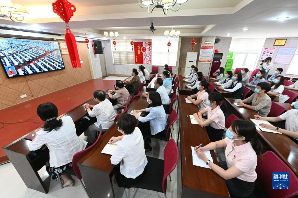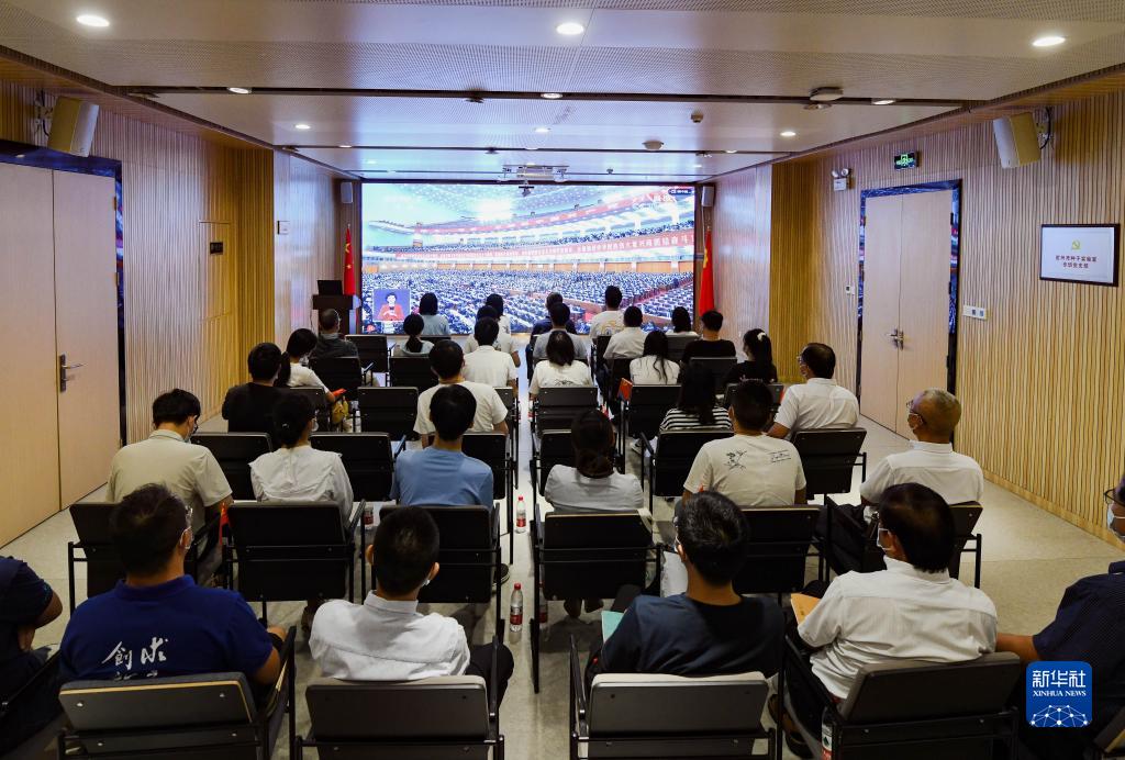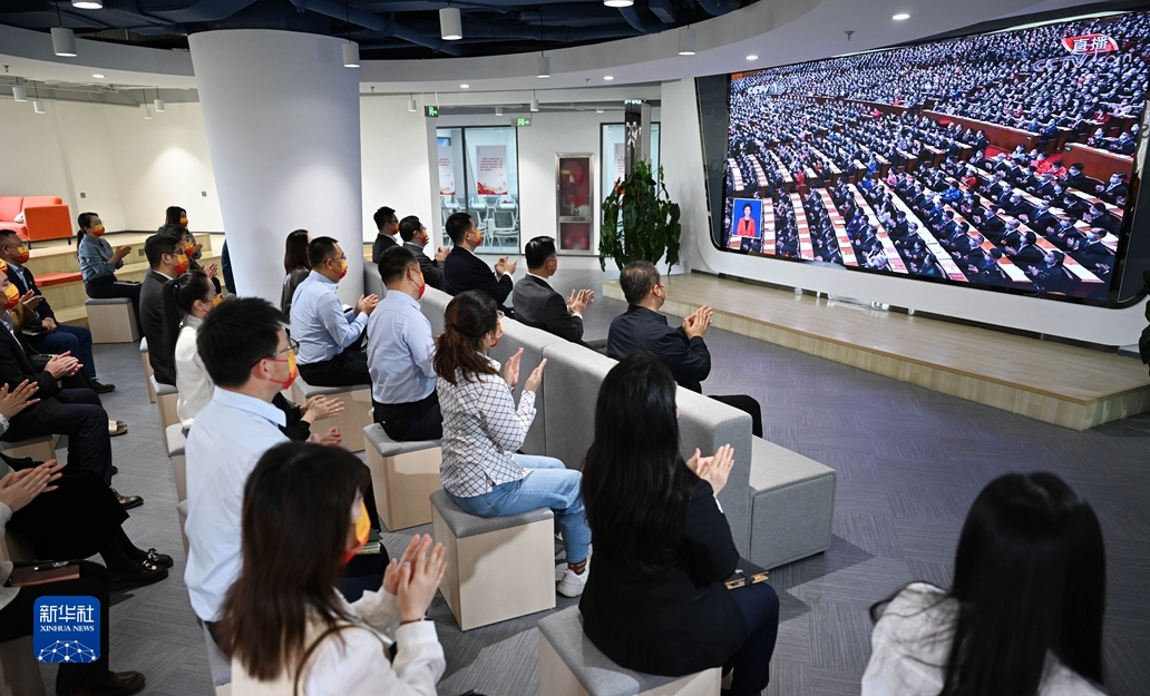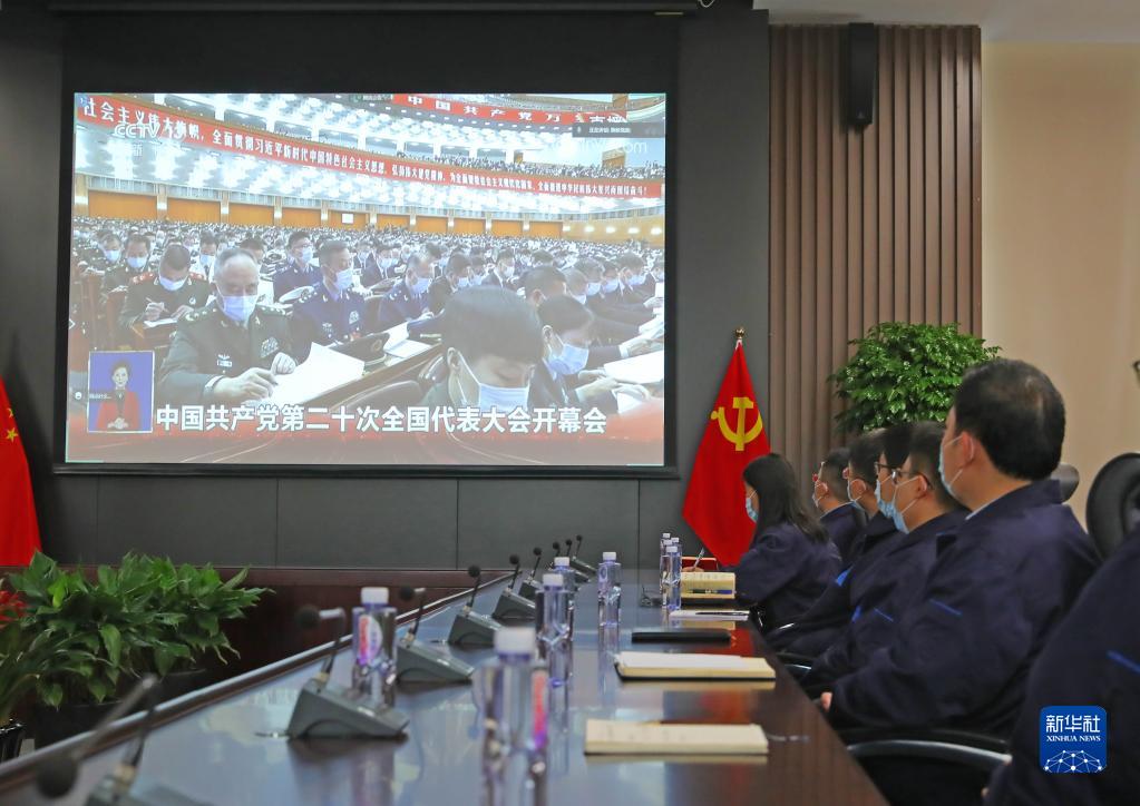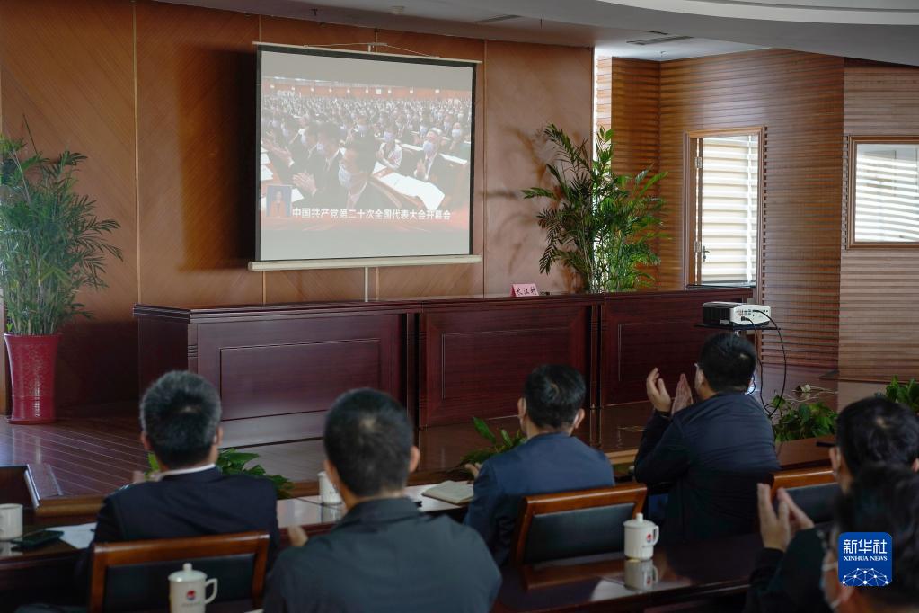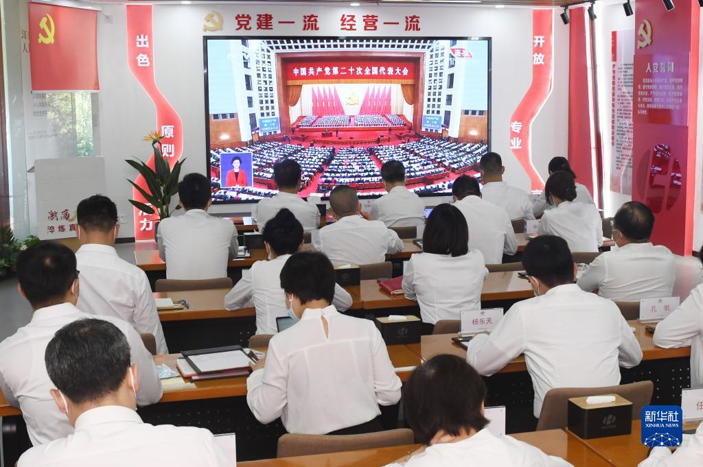 10月16日,在湖北省武汉市,华工科技产业股份有限公司党委中心组集中观看中国共产党第二十次全国代表大会开幕会。新华社记者 程敏 摄