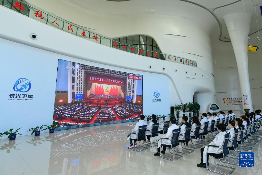 10月16日,在吉林省长春市,长光卫星技术股份有限公司科研人员收看中国共产党第二十次全国代表大会开幕会。新华社记者 许畅 摄