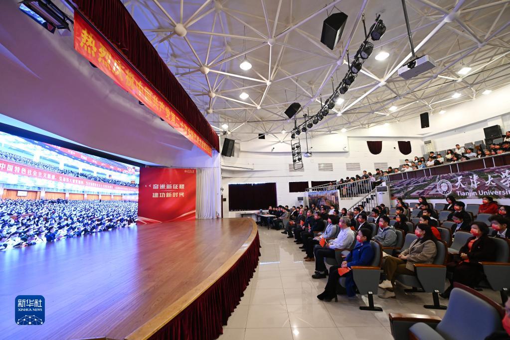10月16日,天津大学部分师生代表在报告厅收看中国共产党第二十次全国代表大会开幕会。新华社记者 李然 摄