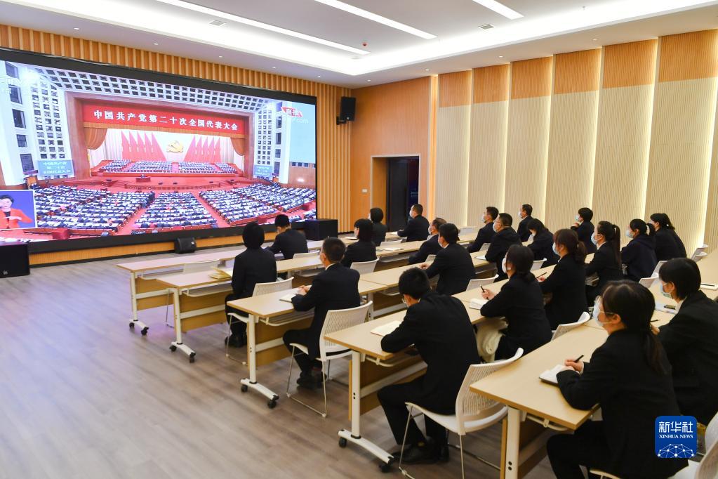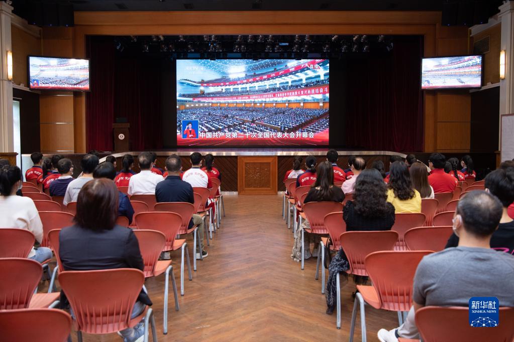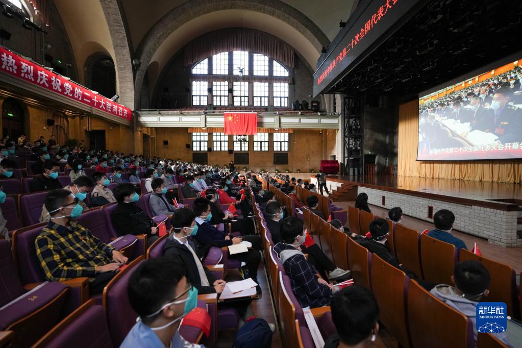 10月16日,西安交通大学部分师生收看中国共产党第二十次全国代表大会开幕会。新华社记者 李一博 摄