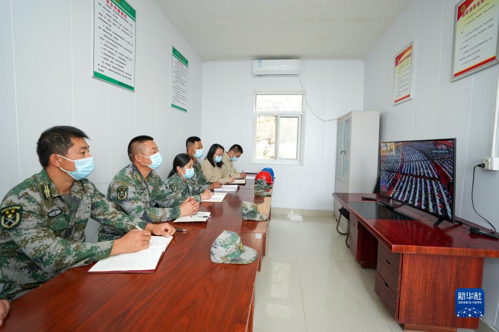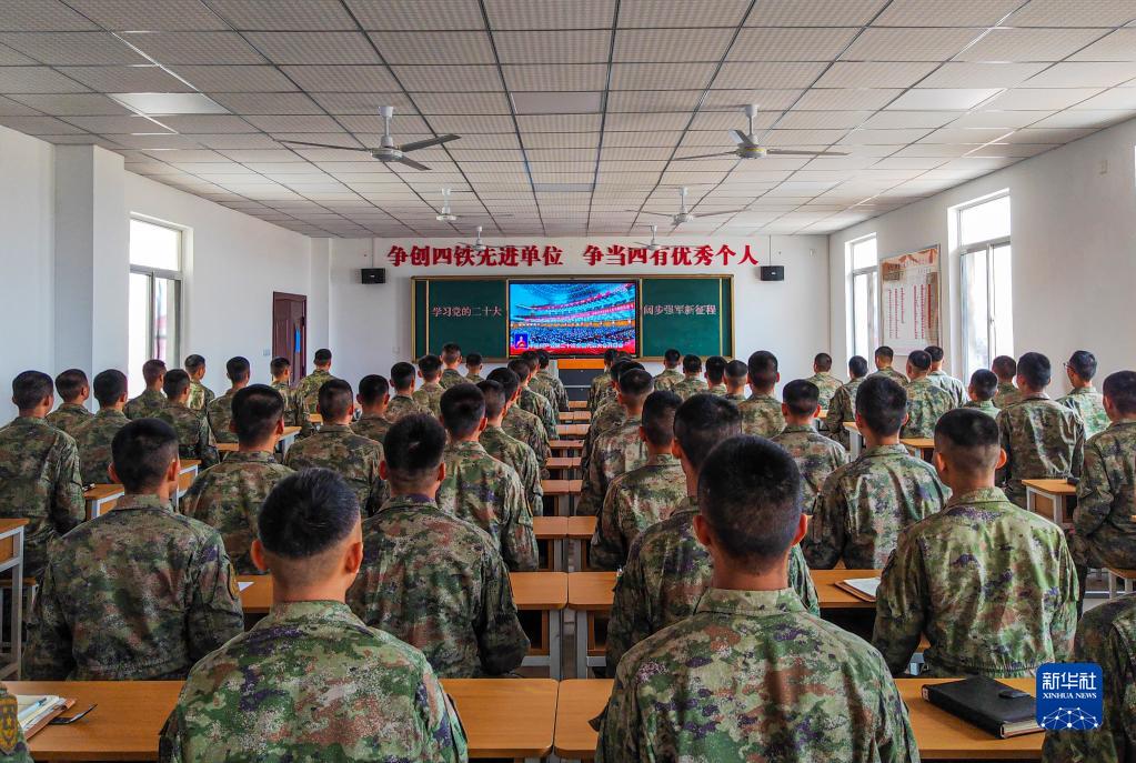 10月16日,东部战区陆军第72集团军某旅装甲步兵连官兵收看中国共产党第二十次全国代表大会开幕会。新华社发(张毛 摄)