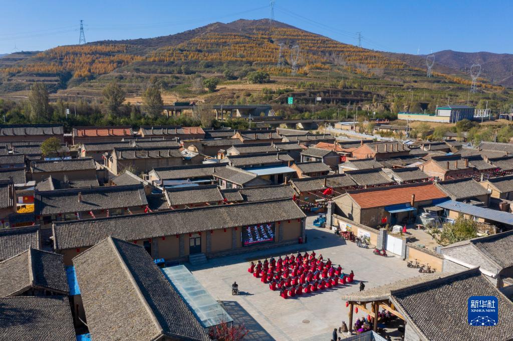10月16日,山西省忻州市岢岚县宋家沟村村民在观看中国共产党第二十次全国代表大会开幕会(无人机照片)。新华社记者 杨晨光 摄