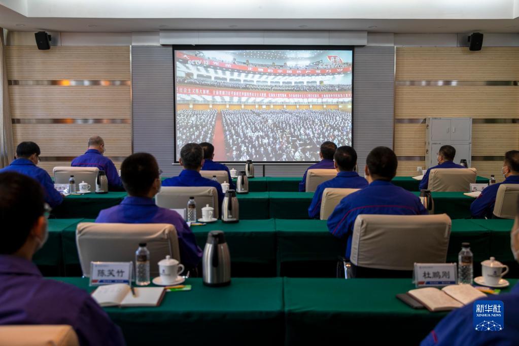 10月16日,哈电集团哈尔滨电机厂有限责任公司职工收看中国共产党第二十次全国代表大会开幕会。新华社记者 张涛 摄