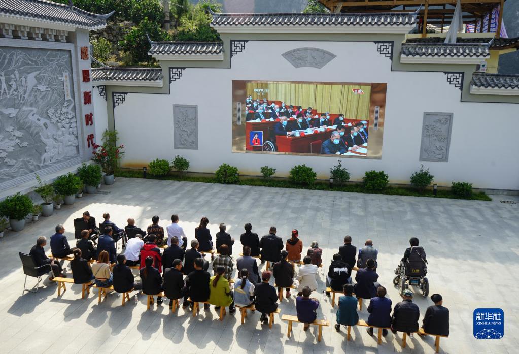 10月16日,在湖南省湘西土家族苗族自治州花垣县双龙镇十八洞村,村民在收看中国共产党第二十次全国代表大会开幕会。新华社记者 陈思汗 摄