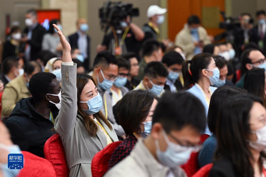 这是记者在分会场举手提问。新华社记者 金良快 摄