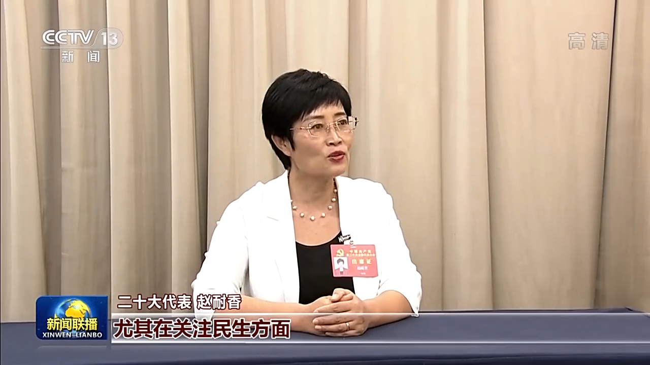 二十大代表 赵耐香:聆听了总书记的报告特别激动,尤其在关注民生方面既暖心又温馨。十年来,老百姓的生活越来越幸福,老旧小区改造得民心顺民意,大家精神饱满、喜气洋洋,老百姓满满的获得感。