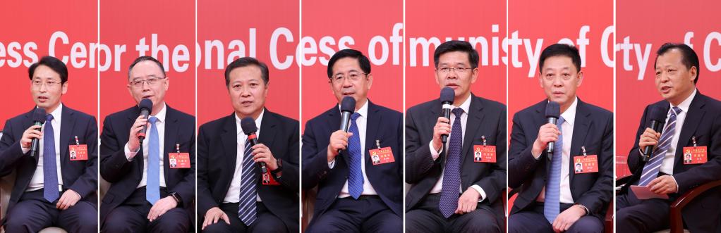 10月18日,中国共产党第二十次全国代表大会新闻中心举行集体采访,请北京、天津、河北、山西、内蒙古、辽宁、吉林代表团新闻发言人出席,介绍代表团学习讨论二十大报告情况,并回答记者提问(拼版照片)。