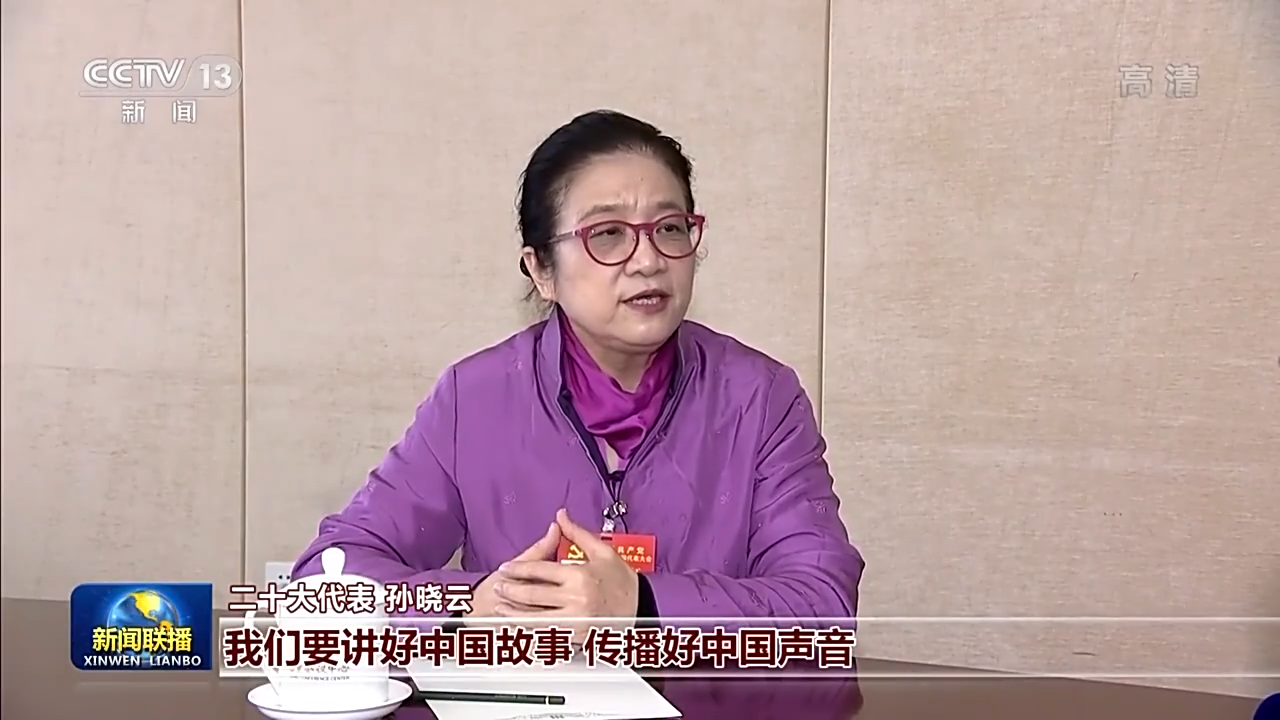 二十大代表 孙晓云:作为党的文艺工作者,我们要讲好中国故事,传播好中国声音。在习近平新时代中国特色社会主义思想的指引下,坚持以人民为中心的创作导向,推出更多的讴歌时代的优秀作品,培养青年人才薪火传递,生生不息。