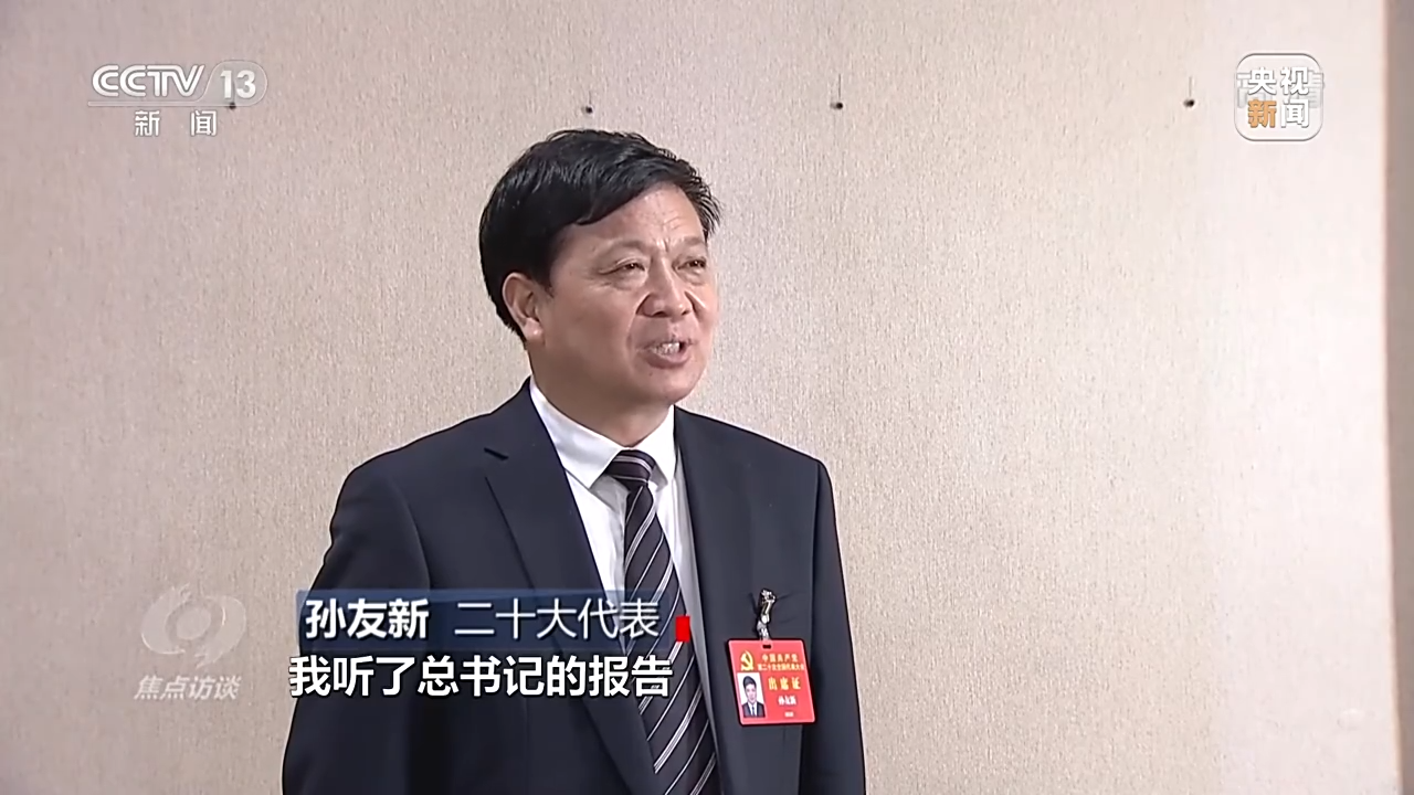 二十大代表 孙友新:作为一名基层的教育代表,我听了总书记的报告,感到非常振奋,深受鼓舞,我将牢牢把握“六个必须坚持”的核心要义,坚持人民至上,办好人民满意的教育。