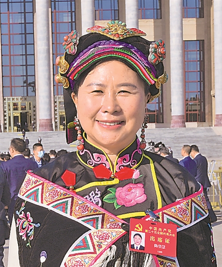 聆听、交流、学习……陈望慧的二十大时光忙碌又充实。作为一名来自民族地区的基层党代表,陈望慧深刻感受到,在二十大报告中,条条道路指明了百姓的新奔头、句句真情道出了百姓的心里话、件件实事提到了百姓的心坎上。“二十大报告提出,经过接续奋斗,实现了小康这个中华民族的千年梦想,打赢了人类历史上规模最大的脱贫攻坚战。这让我在欣喜之余,更感受到沉甸甸的责任,带领村民们增收致富的工作一刻也不能停。”陈望慧说。