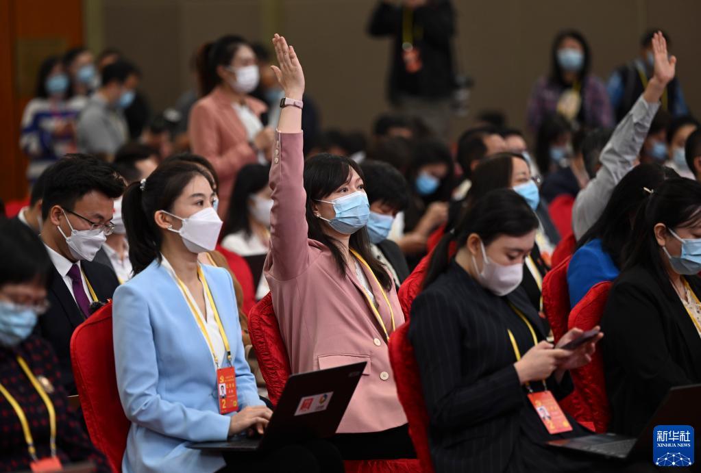 10月21日,中国共产党第二十次全国代表大会新闻中心举行记者招待会。这是记者在分会场举手提问。新华社记者 金良快 摄