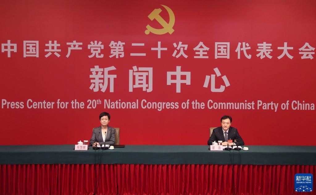 10月21日,中国共产党第二十次全国代表大会新闻中心举行记者招待会。新华社记者 贾浩成 摄