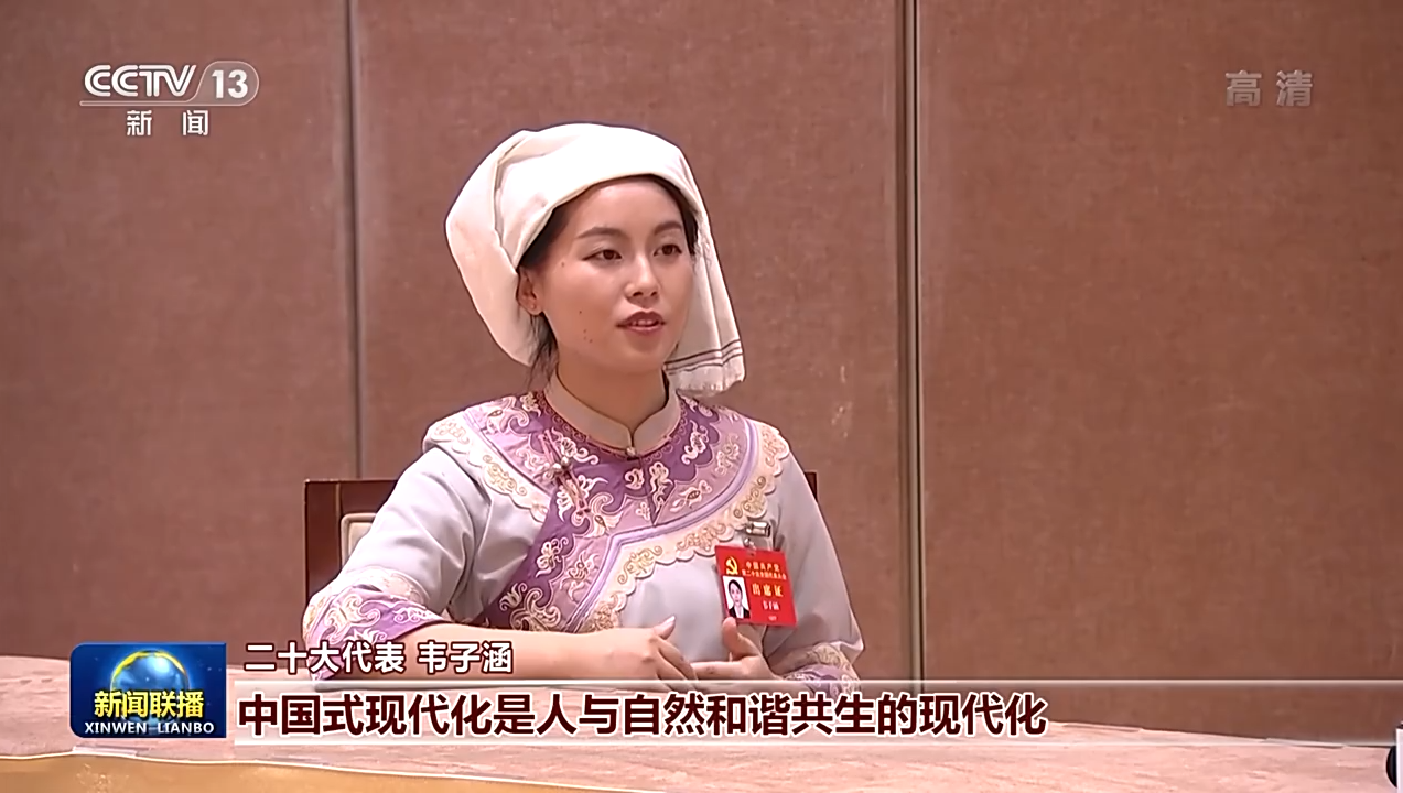 二十大代表 韦子涵:报告中强调,中国式现代化是人与自然和谐共生的现代化。在乡村振兴工作的一线,我会继续把优良的生态环境化为我们的发展优势和竞争优势。牢固树立和践行绿水青山就是金山银山的理念,推动形成绿色低碳的生产方式和生活方式。