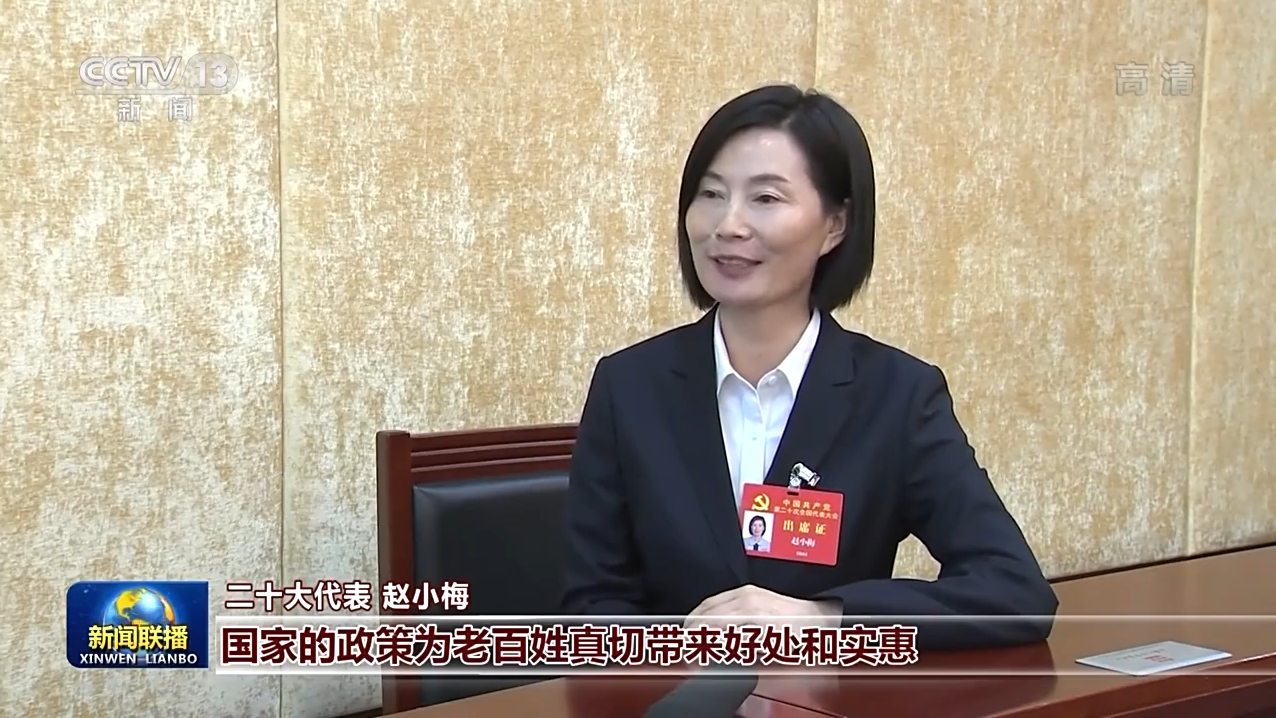 二十大代表 赵小梅:让我感触最深的是国家的政策为老百姓真切带来好处和实惠。近年来,我的家乡积极推进新时代产业工人队伍建设改革,专门为产业工人规划设置了工匠人才发展通道,让优秀的产业工人找得到赛道、看得准方向、认得清规则、比得出业绩、获得好发展。