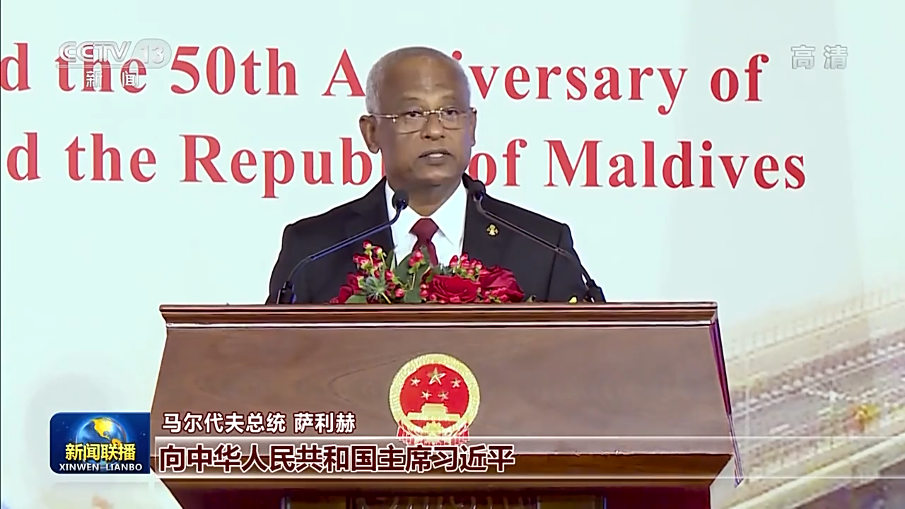马尔代夫总统 萨利赫:我以马尔代夫政府和人民的名义,向中华人民共和国主席习近平,向中国政府和友好的中国人民,表达最热烈的祝贺和诚挚祝福。我还要向习近平主席和在北京胜利闭幕的中国共产党第二十次全国代表大会表达最美好的祝福,期待这次大会的成果能够继续引领中国人民取得更大进步。