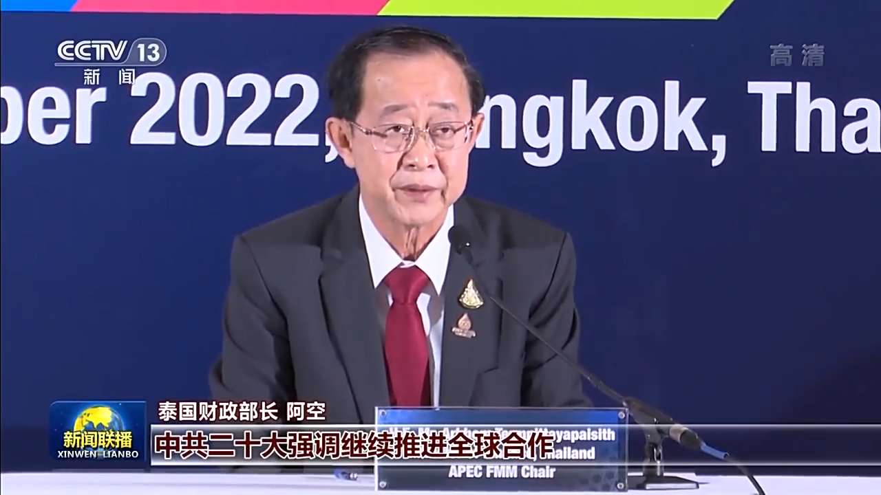 泰国财政部长 阿空:中共二十大强调继续推进全球合作,泰国一直通过参与“一带一路”倡议等与中国进行密切合作。连接泰国、老挝与中国的中老泰铁路项目就是一个很好的范例,这不仅有利于我们的发展,也将加强东盟国家与中国的互联互通。