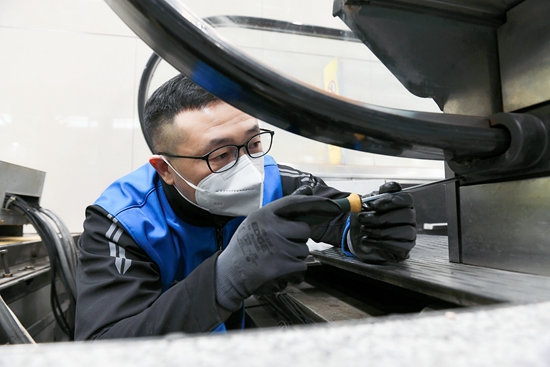 除对电梯进行了维修、保养,刘辰青和他的同事们还有一项重要的工作——每日巡检,主要是看看电梯外观有没有损坏的地方,听听设备运行时有没有发出异响等,航站楼上百部电梯分布在各个位置,维修工每天都至少要走3万步,才能巡检一遍。这只是每日的“打底”工作,在岗期间,还要时刻都要保持着待命状态,一旦有突发情况,他们就要像消防队员紧急集合那样冲到现场,刘辰青说:“我们有规定,任何一部电梯出现故障,必须在10分钟内到场处理。”