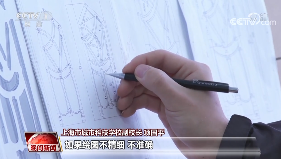 上海市城市科技学校副校长 项国平:首先是有个投影放样,就像绘图一样,绘图之后会把图板上的这些线投放到杆件上。如果绘图不精细、不准确,那么投放上去的线位置就不精细,做出来拼接时,这个缝就会产生。第二个方面是加工,比如说用手工的或者用机械的在加工榫接位置的时候,如果加工得不够精细,那么也会产生缝隙。