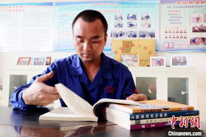 图为工作之余,阅读专业书籍的王万明。(资料图) 中煤张家口煤矿机械有限责任公司供图
