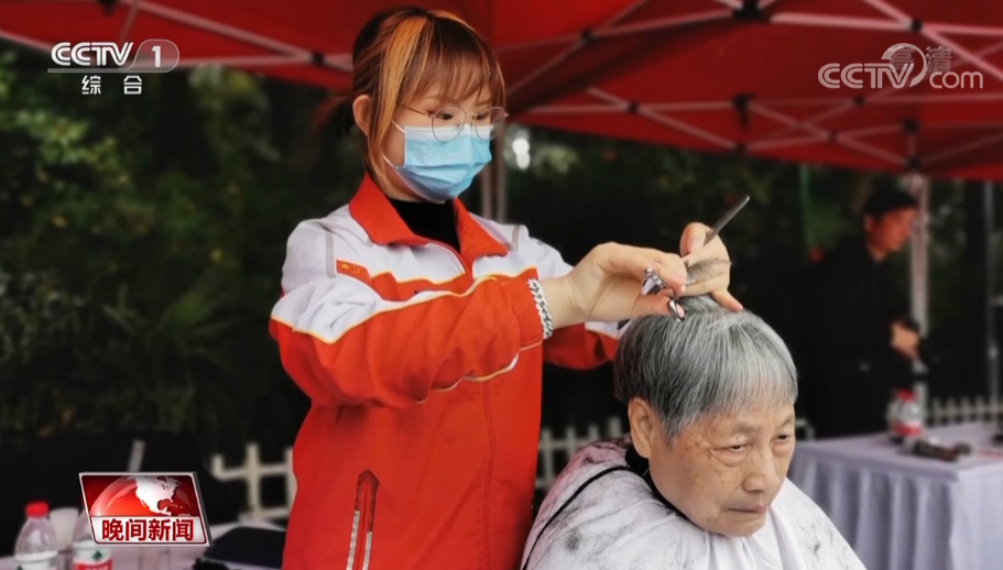 在紧张的训练之余,沈文青还会经常跟随教练参加“爱心义剪”活动,为社区的老人、环卫工人等人群提供免费的发型修剪,用一技之长回馈社会。