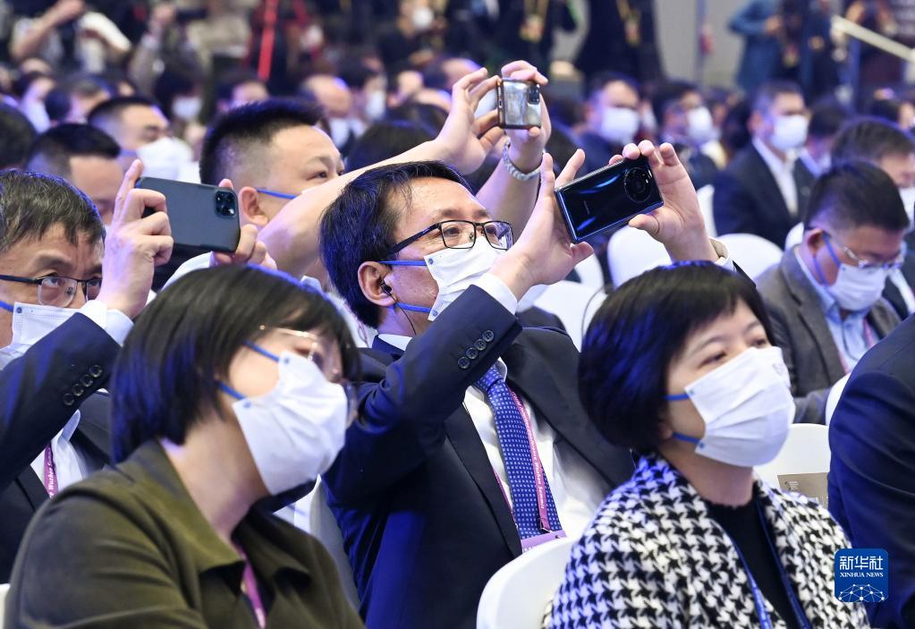 11月9日,参会者在开幕式现场拍照。当日,2022年世界互联网大会乌镇峰会在浙江乌镇开幕。 新华社记者 李贺 摄