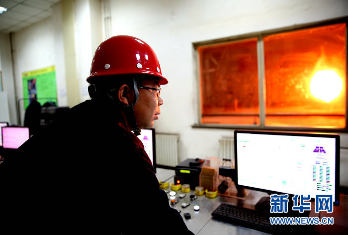 罗海明观察炉口倒渣情况。(新华网 杨腾格尔摄)