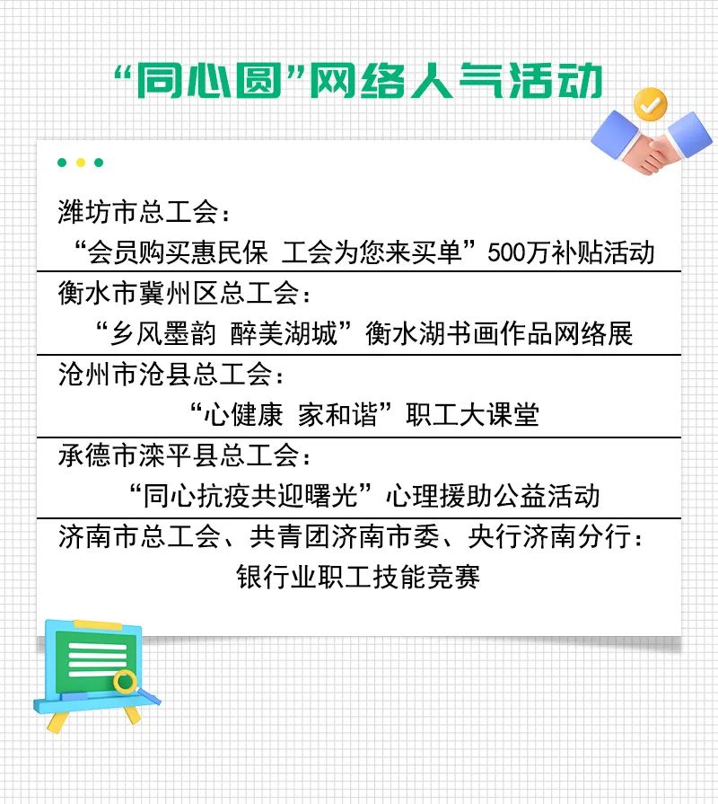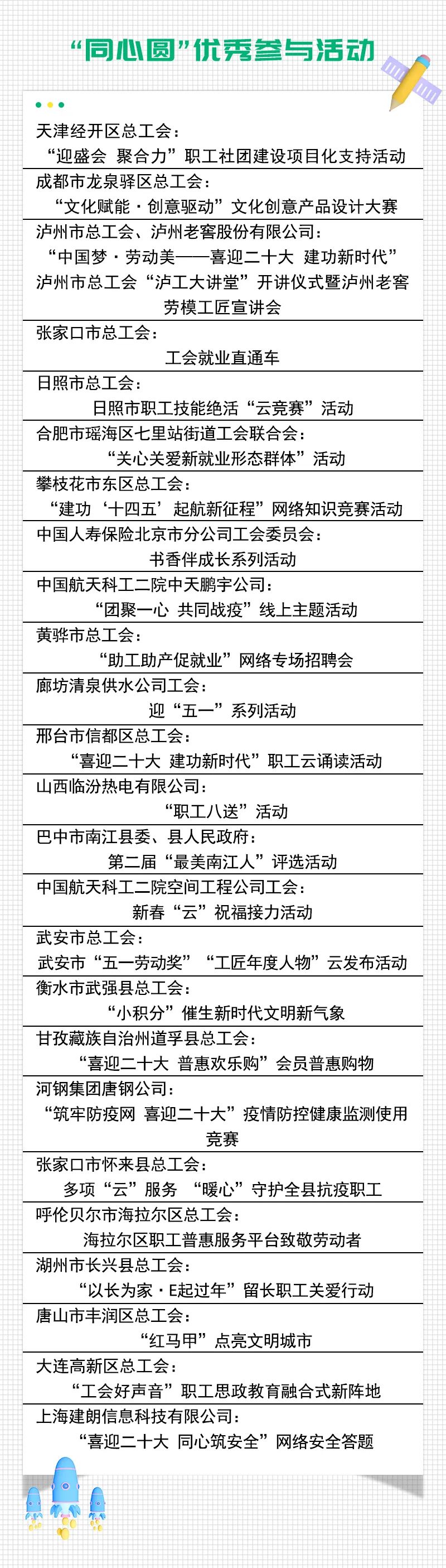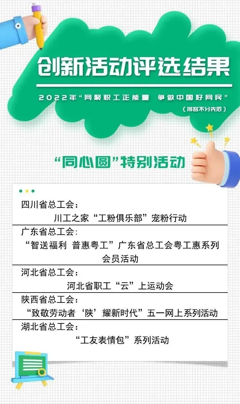 2022年网络正能量创新活动征集作为今年全总“网聚职工正能量 争做中国好网民”主题活动10个子项目征集活动之一,由河北省总工会、“学习强会”承办。活动面向各级工会征集利用互联网组织职工开展的各类线上活动,及各类线下线上融合开展的正能量创新活动。