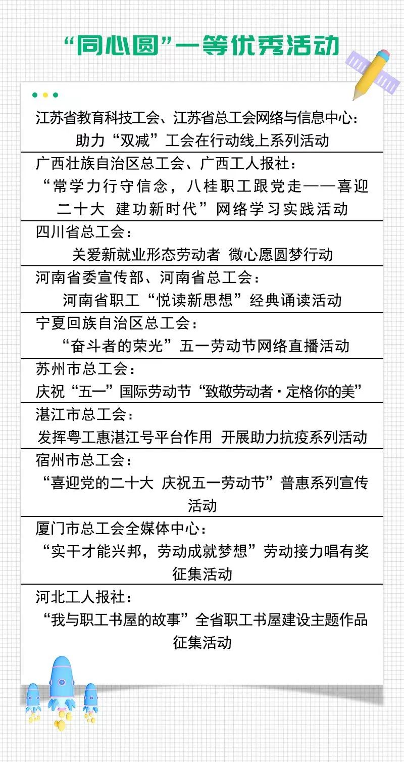 自启动以来,共收到全国近26个省市及部分产业工会的386个活动,按照全总网络工作部统一安排,10月9日—13日将初评的120个作品于在全总官微进行了投票,累计投票81.8万人次。