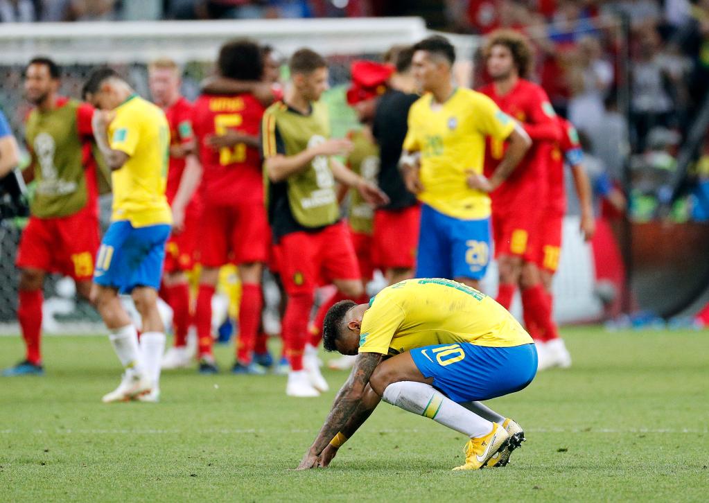 资料图:2014年7月6日,内马尔在球队输给比利时队后。