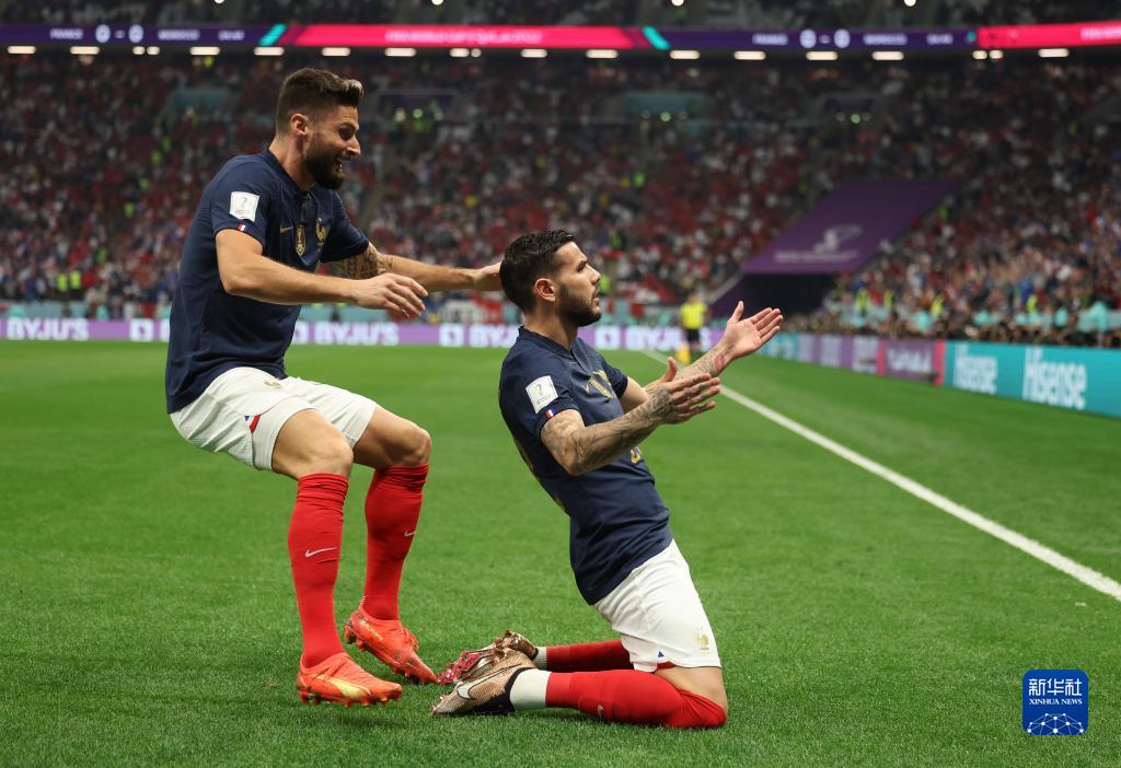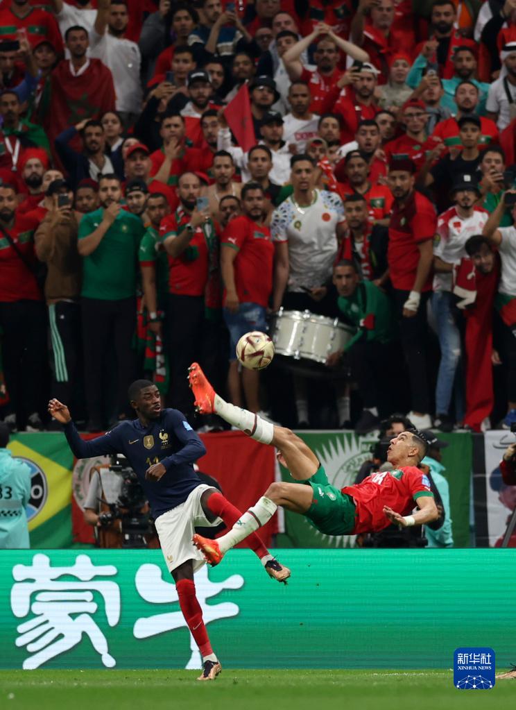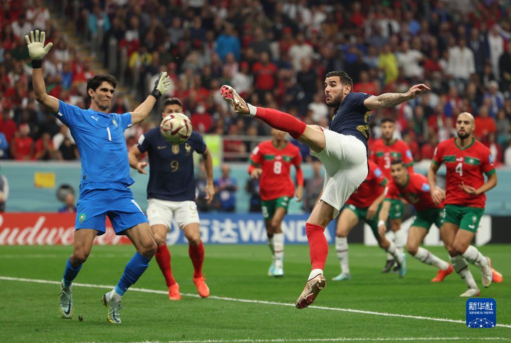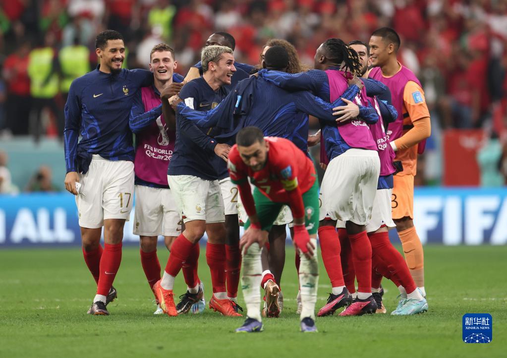 当日,在卡塔尔豪尔海湾球场进行的2022卡塔尔世界杯足球赛半决赛中,法国队以2比0战胜摩洛哥队,晋级决赛。