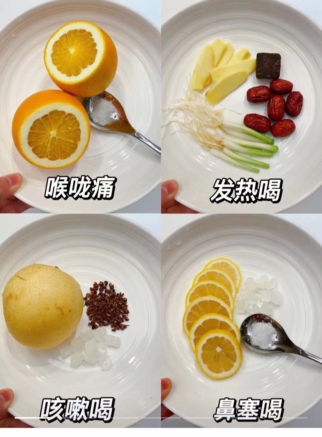 可以用冰糖炖生梨,生梨一只掏空加冰糖隔水炖熟食用,如果有百合、杏仁粉或金银花,可以加一点。还可以用3、4个金橘煮水代茶饮。