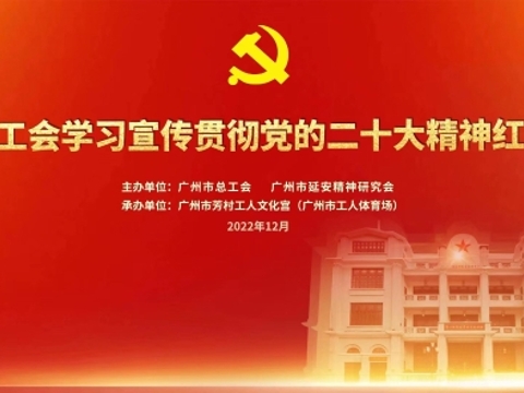 直播回顾丨广州工会学习宣传贯彻党的二十大精神红讲堂(上)(一) 12月23日,为深入学习宣传贯彻党的二十大精神,培养打造劳模宣讲和红色讲解员队伍,加强职工思想政治引领,引导广大职工坚定理想信念,把思想统一到党的二十大精神上来,广州市总工会决定举办“广州工会学习宣传贯彻党的二十大精神红讲堂”系列宣讲报告暨劳模宣讲、红色讲解员队伍培训。中工网首页、视频号等同步直播。
