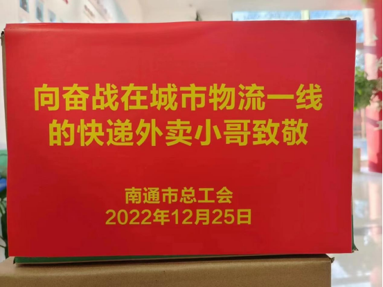 面对当前依然严峻复杂的疫情形势,快递员、网约配送员承担着大量城市民生保供“最后一公里”的配送服务,在维系城市正常运行,方便市民生活等方面发挥着重要作用。他们的健康和冷暖也时时刻刻牵动着工会“娘家人”的心,南通市总工会第一时间将带着熬制温度的药剂送到小哥们手中,用于他们对新冠的预防和轻微症治疗。